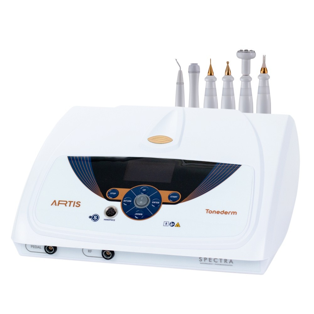 O plasma fracionado da TONEDERM une as tecnologias da radiofrequência do SPECTRA com os benefícios térmicos e não térmicos do plasma, o SPECTRA é capaz de produzir doses fracionadas de plasma propiciando mais controle, precisão e segurança aos tratamentos estéticos através das ponteiras: